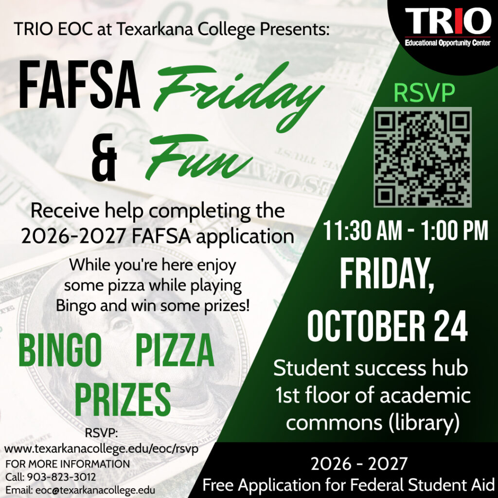 Join us for help completing the 2026-2027 FAFSA application over pizza and bingo.